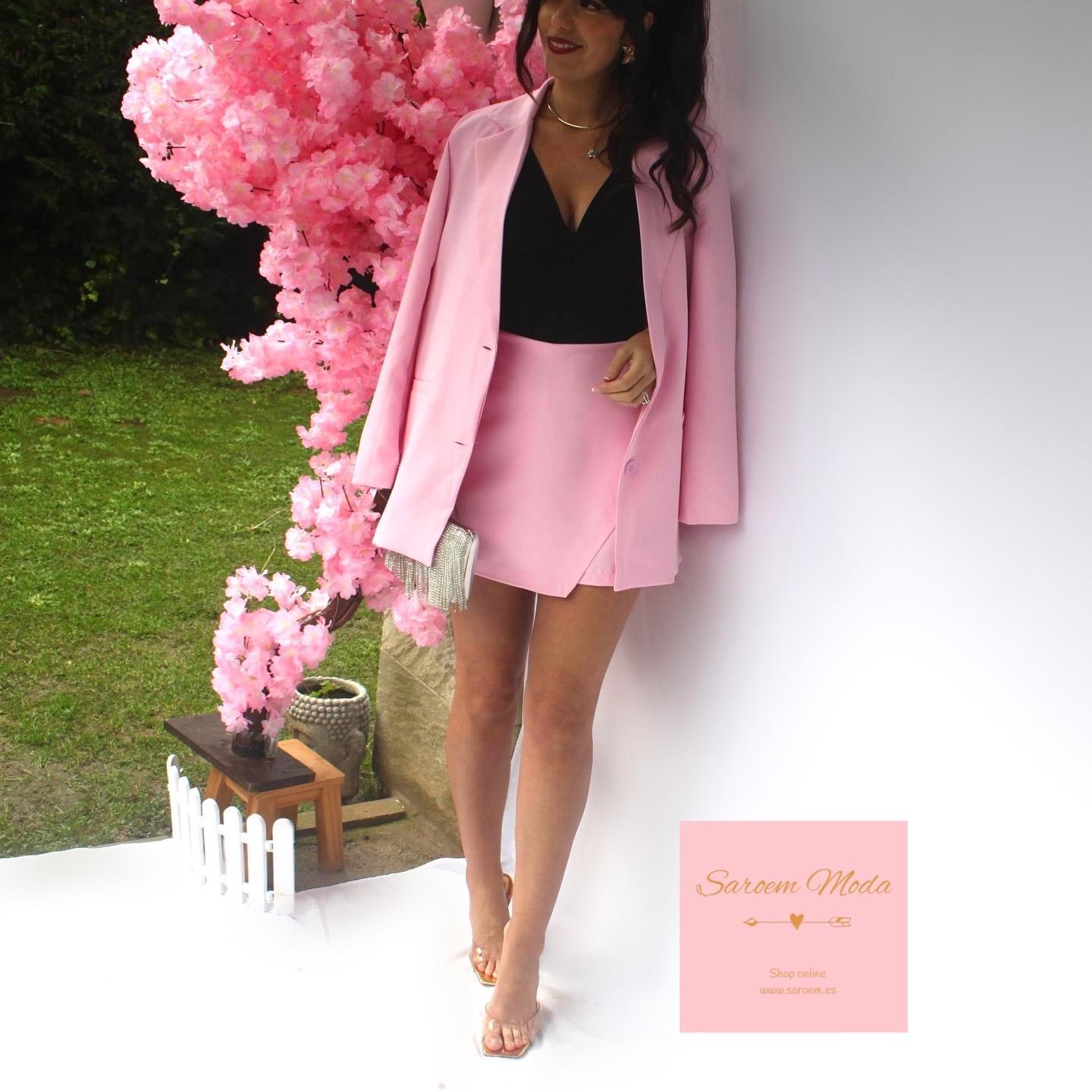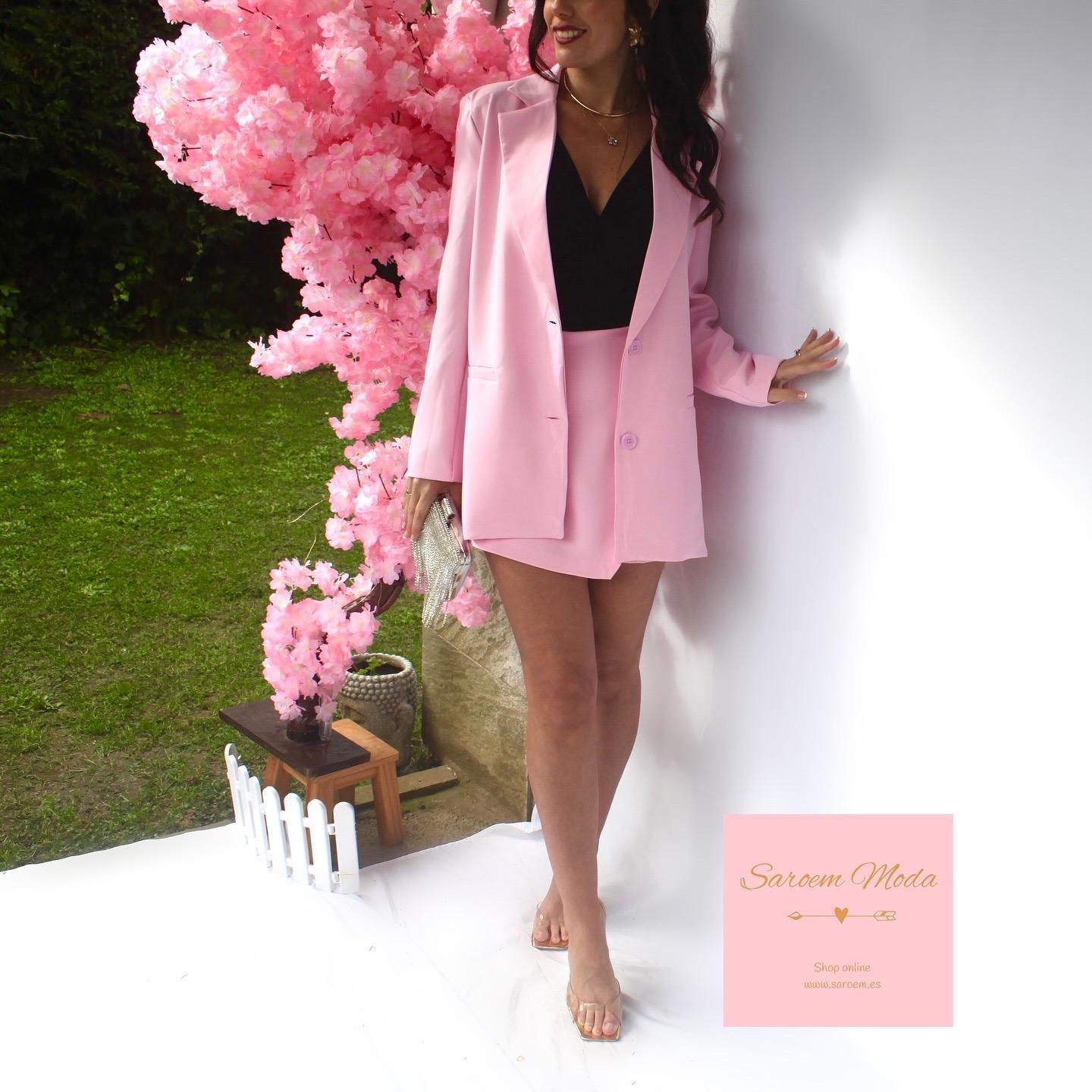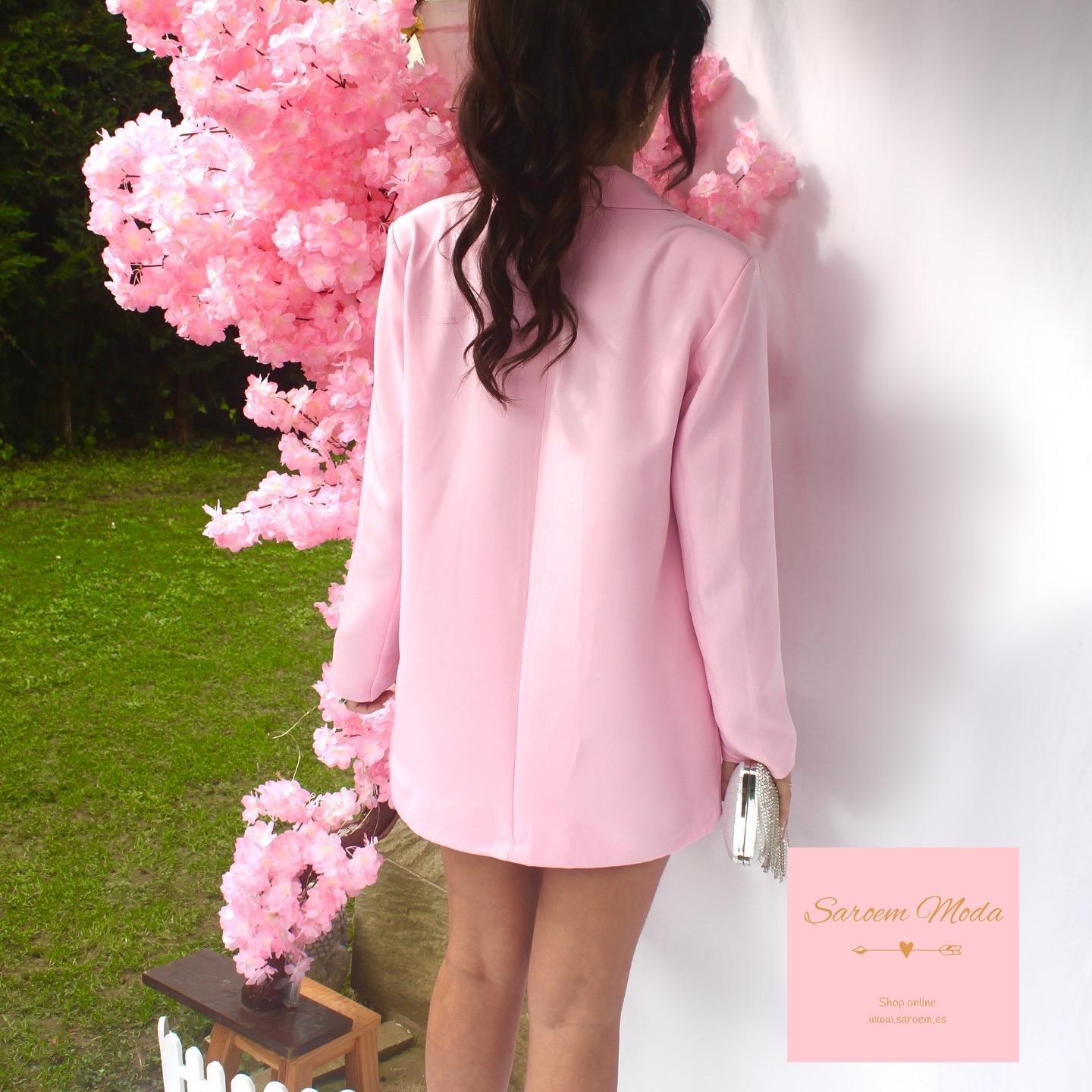 - Blazer con forro y hombreras. Es larga, estilo oversize