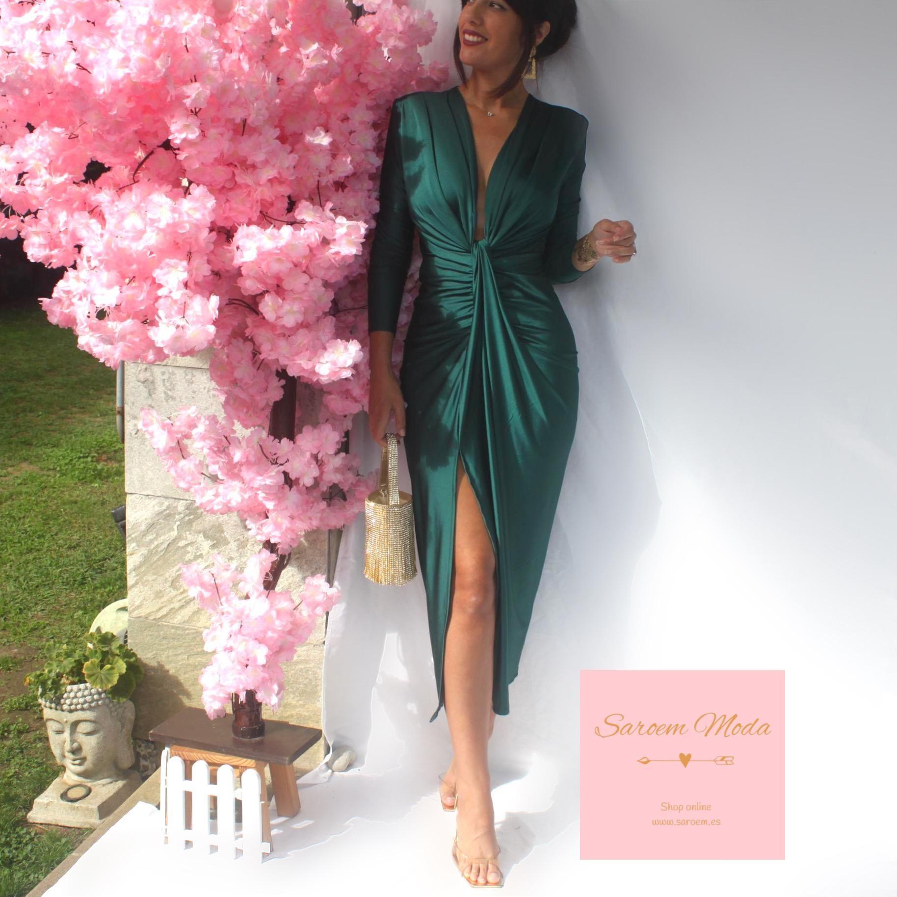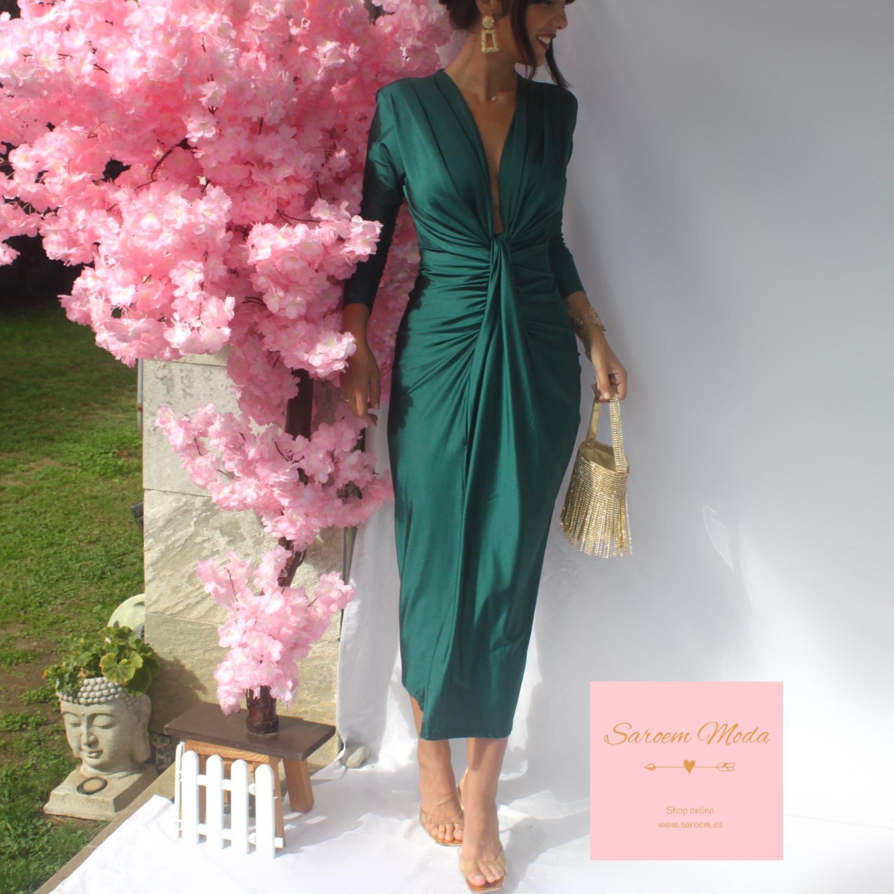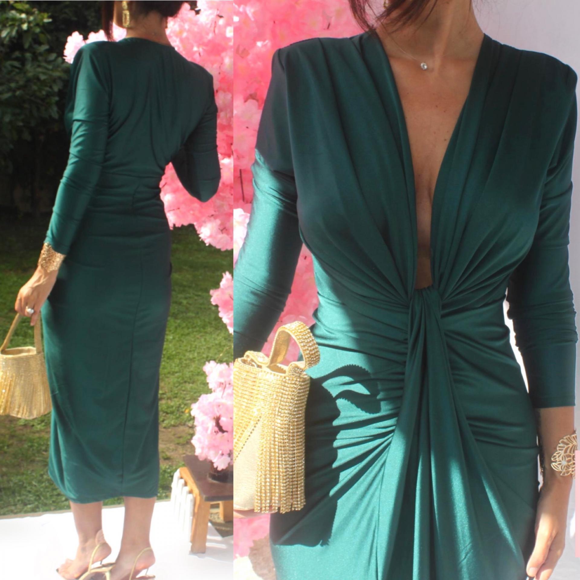 Vestido Damia Verde Botella Manga Larga