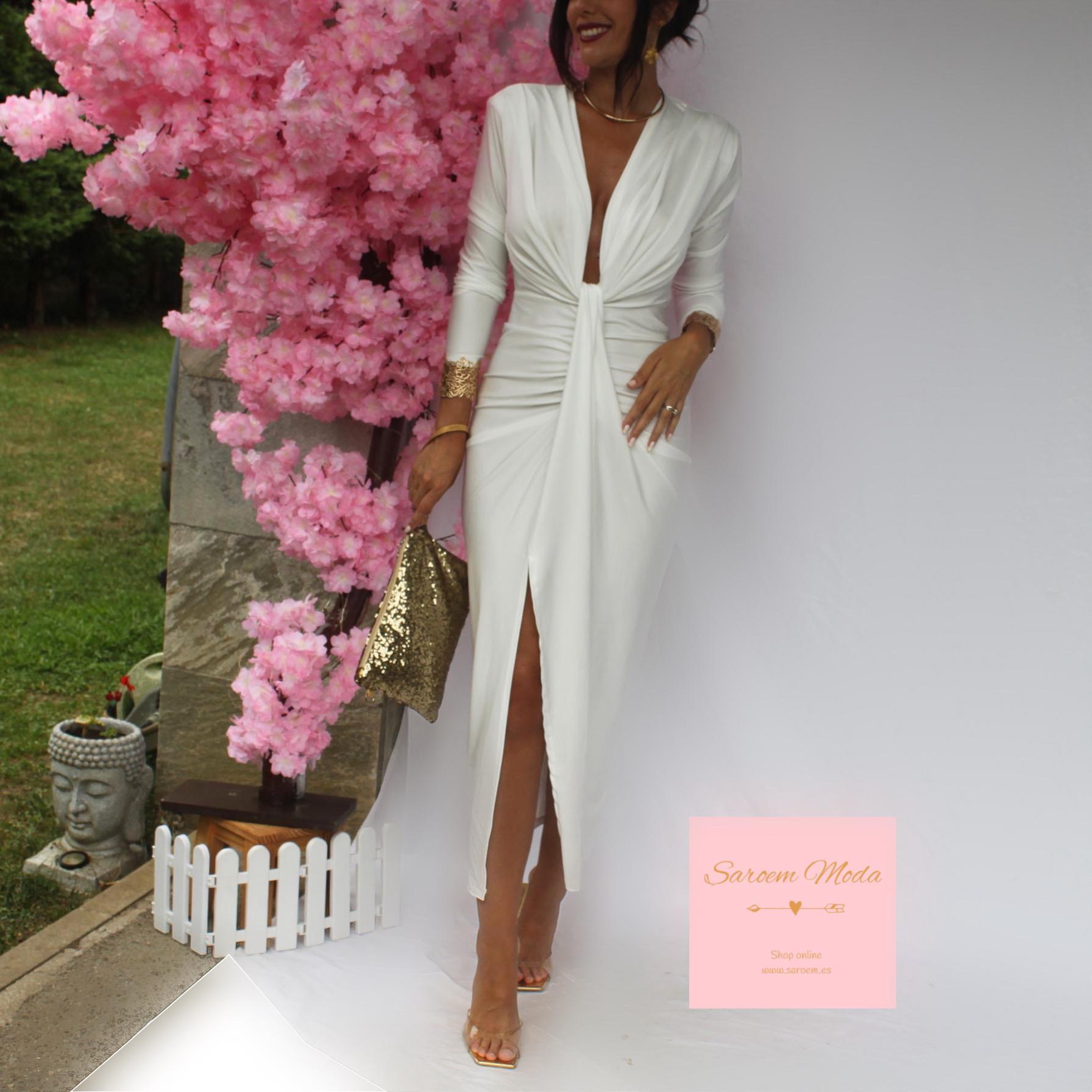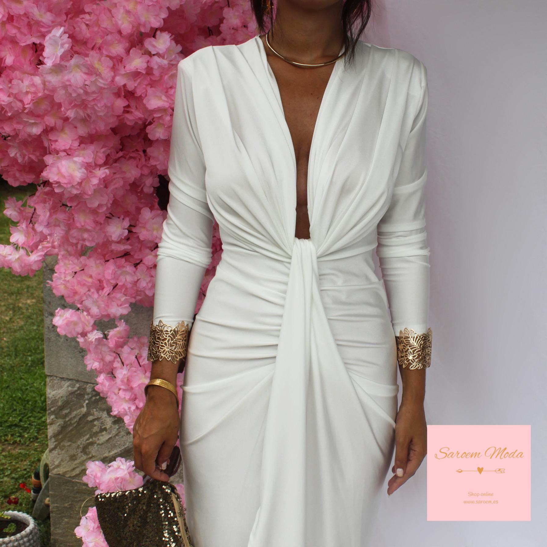 Vestido Damia Blanco Manga Larga